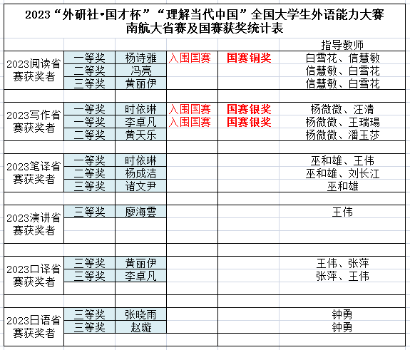 近日,2023年外研社国才杯“理解当代中国”全国大学生外语能力系列大赛落下帷幕,我校选手在伟德官网竞赛团队教师的精心组织和指导下取得了骄人的成绩,其中全国总决赛3项获奖,江苏省复赛获奖14项。