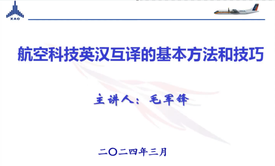 2024年3月18日晚,南航伟德bv国际体育MTI教育中心邀请了知名企业导师毛军锋译审给2023级研究生带来行业翻译实训的第一堂课。毛军锋曾任中国航空工业集团有限责任公司翻译系列高级专业技术职务任职资格评审委员会委员,现任中国翻译协会专家会员、中国航空学会会员。本次课程,毛老师给大家带来了航空科技英汉互译的理论与实践系列课程,侧重分析和探讨了航空科技汉译英的翻译策略。