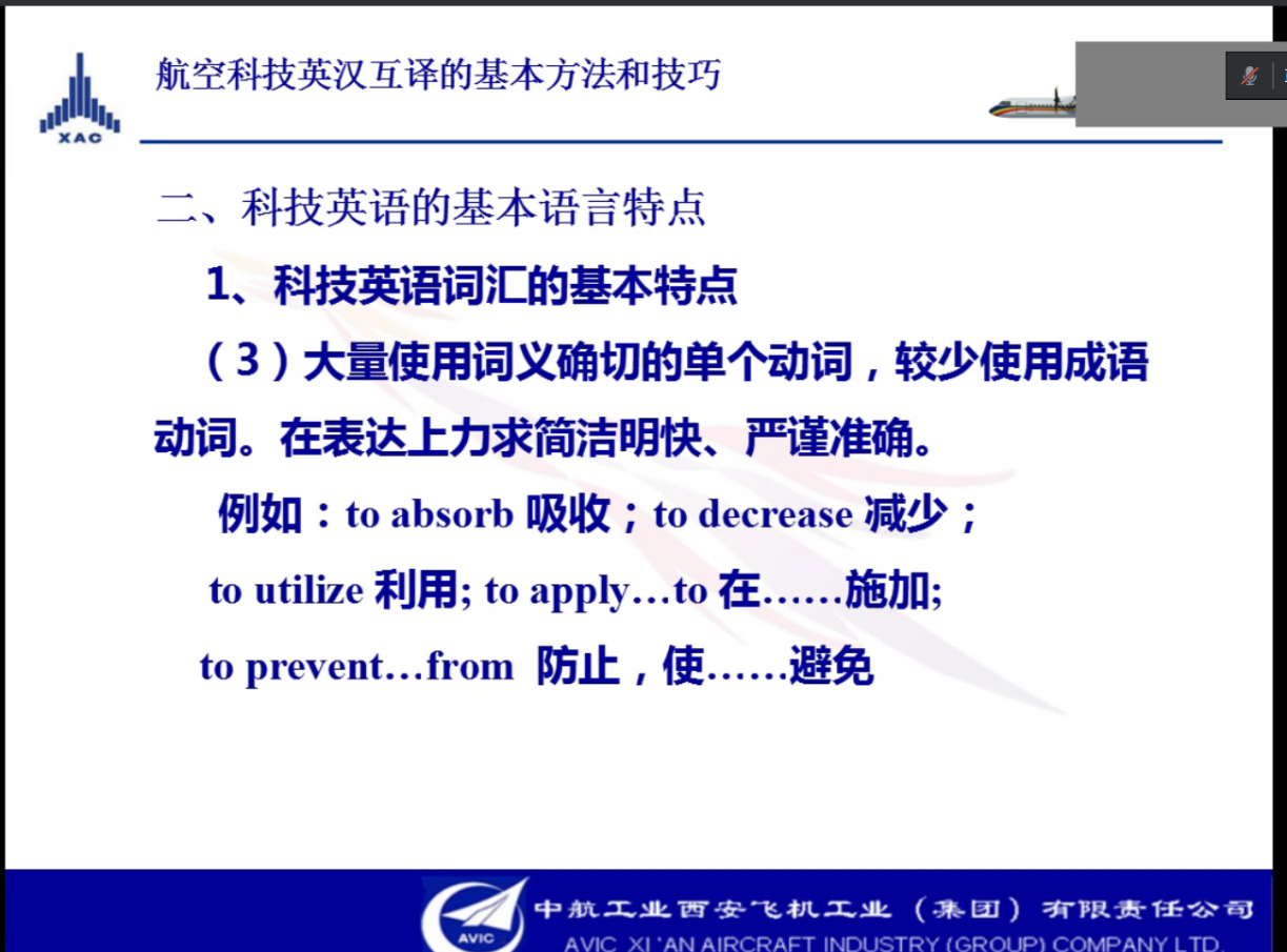 作为南航特色之一的航空英语是我校外语专业学生亟需学习的课程,而航空英语翻译对MTI的学生尤为重要。在长达两个小时的课程中,毛老师为同学们介绍了中外航空发展简史、科技英语的基本语言特点、科技英语翻译的基本方法、航空科技英语的特点以及航空科技汉译英的基本方法和技巧,还辅以图片和相关练习帮助同学们更好地理解课程内容。多年积累的实践经验加上深入浅出的授课方式让同学们对航空英语翻译的学习有了新的收获。课堂上,同学们全神贯注,仔细听讲,认真思考。在课程即将结束之时,同学们纷纷对毛老师的精彩讲解表示感谢。伟德bv国际体育王孝存等老师也全程参加了此次讲座。
