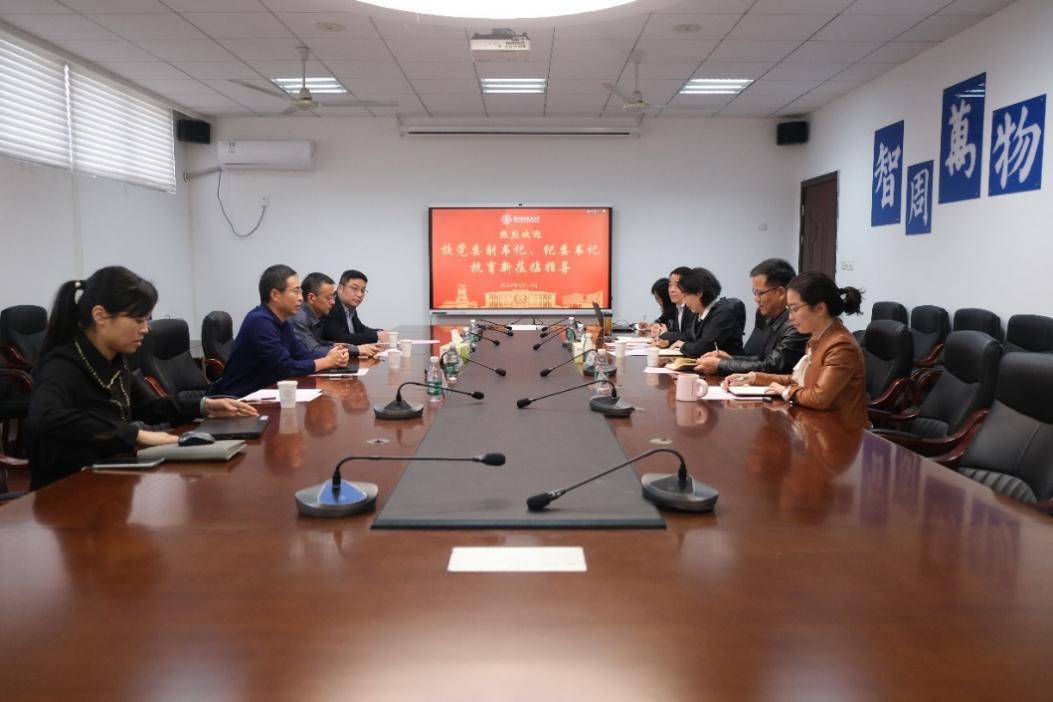 4月11日,校党委副书记、纪委书记杭育新带队赴伟德bv国际体育开展监督调研。校纪委副书记、张海艮,校纪委委员、保密处处长张鹏,以及伟德bv国际体育领导班子成员参加调研。