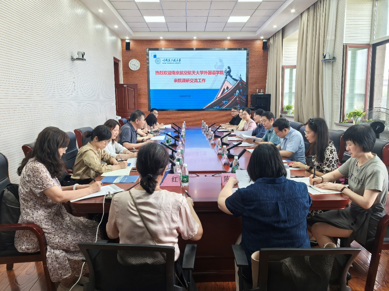 在哈工大人文社科学部,李雪主任介绍了人文社科学部总体情况,董霖书记介绍了人文社科学部党建品牌。他们表示,作为工信部部属院校中的文科院部,两家前期建立了密切的交流合作,希望双方今后进一步立足党和国家、学校的发展理念和发展规划,在复合型人才培养、大学英语教学改革、智库建设、国际化建设等方面进一步加强交流合作,深入挖掘双方在多方面的结合点,共同为学校高质量发展作出贡献。