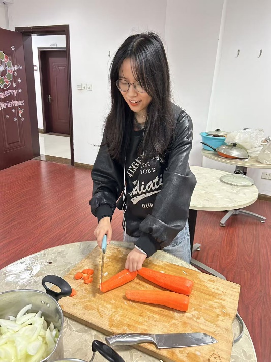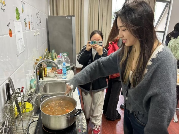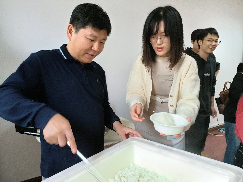 中午时分,外教北村忠吉老师带领部分同学在“快乐厨房”为大家精心准备了咖喱鸡肉饭,香气四溢。日语系的窦硕华、汪丽影、宋歌老师、退休教师王鹏飞老师、大学外语教学部的孙睿超老师与同学们齐聚一堂,共享美食,欢声笑语在空气中弥漫。
