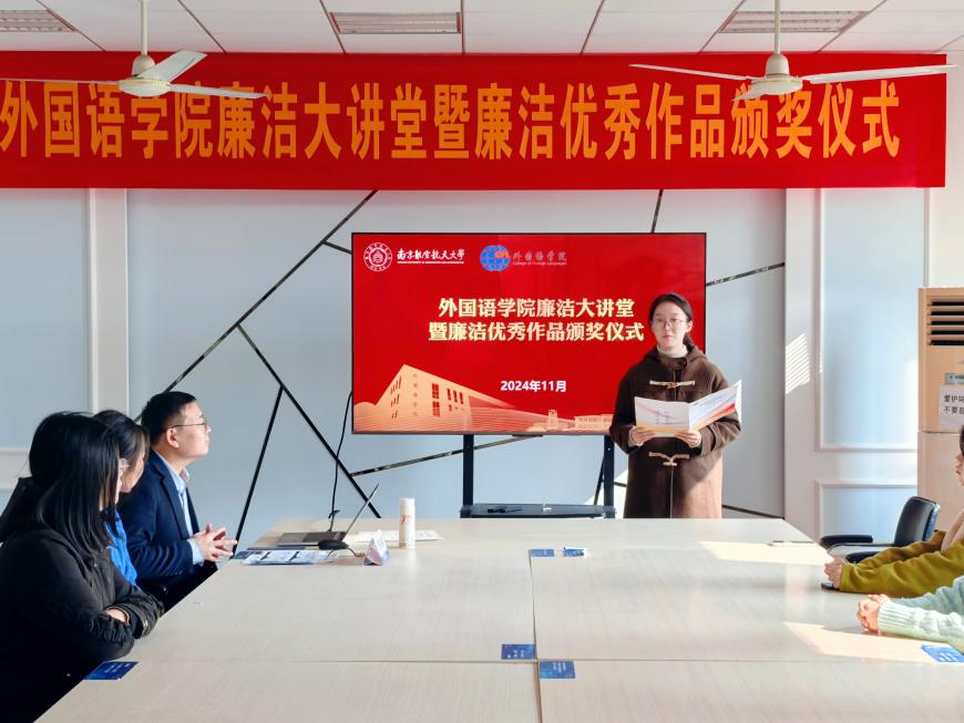为深入贯彻落实党的二十大和二十届三中全会精神,深化“清廉南航”建设实效,伟德官网积极响应学校号召,组织开展了“清风伴行,廉韵沁心”廉洁文化作品征集活动,共收到视频、征文、书画、摄影等各类廉洁作品50余件。11月22日,伟德官网于学院廉洁文化角举办廉洁大讲堂暨廉洁文化优秀作品颁奖仪式。学院党委纪检委员、副院长姜礼福,各师生党支部纪检委员以及获奖学生代表参加了本次活动。