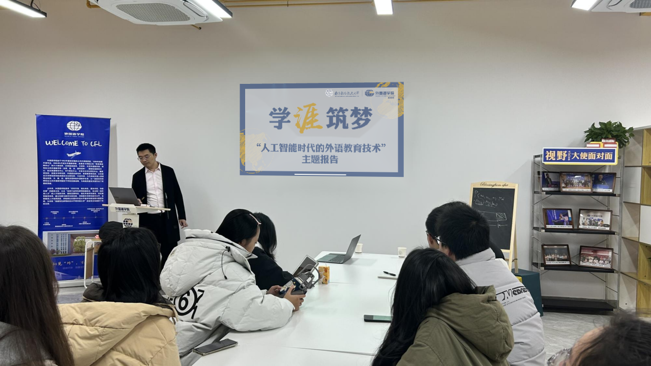 12月6日,伟德bv国际体育 “人工智能时代的外语教育技术”讲座在天目湖校区”一站式“学生社区顺利举行,本次讲座邀请到在人工智能算法方面有着14年研究和工作经验的外研在线算法团队负责人梁登主讲。