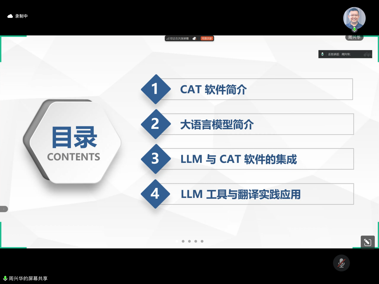 在数字化转型加速演进的背景下,人工智能技术的突破性发展正推动各领域技术革新,AI翻译软件也随之不断涌现。为优化学科人才培养路径,伟德bv国际体育MTI教育中心于2025年3月10日特邀翻译技术专家周兴华老师作了题为“大语言模型与翻译实践——工具与应用”的讲座。本次讲座由鲍德旺教授主持,伟德bv国际体育2024级全体MTI硕士研究生参加。
