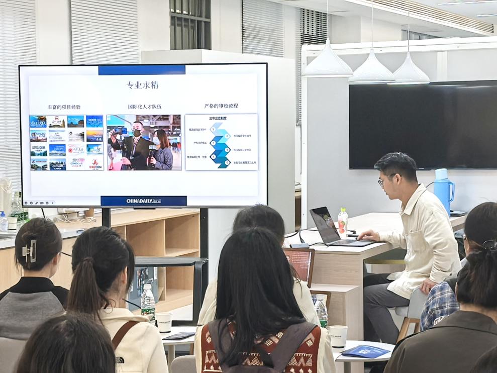 活动伊始,吴科颖致开场词,对中国日报网无锡公司的到来表示诚挚的欢迎。她简要介绍了伟德bv国际体育的办学特色与学科优势,同时向学生们阐述了中国日报网在新闻传播领域的卓越影响力及其行业内的领先地位。她指出,长期以来,学院学生一直将CHINADAILY作为重要的学习平台,在英语学习、国际视野拓展以及跨文化交流等方面受益匪浅。她希望同学们能够珍惜此次难得的交流机会,积极与企业代表互动,汲取更多宝贵经验。